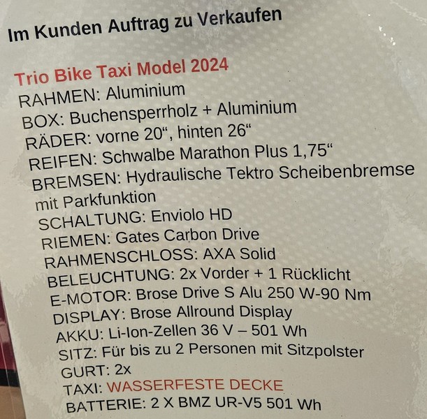 E Rikscha Fa Triobike "Taxi" statt 12.990€ nur 8.795,00€ KM Leistung 20,0